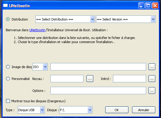 Remarque UNetbootin propose de vous telecharger les images.